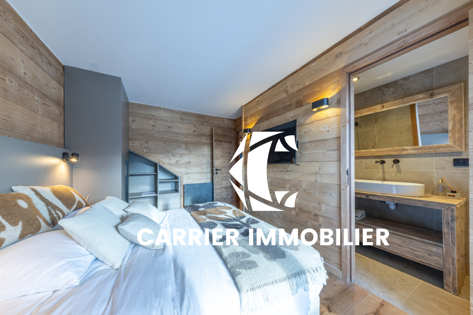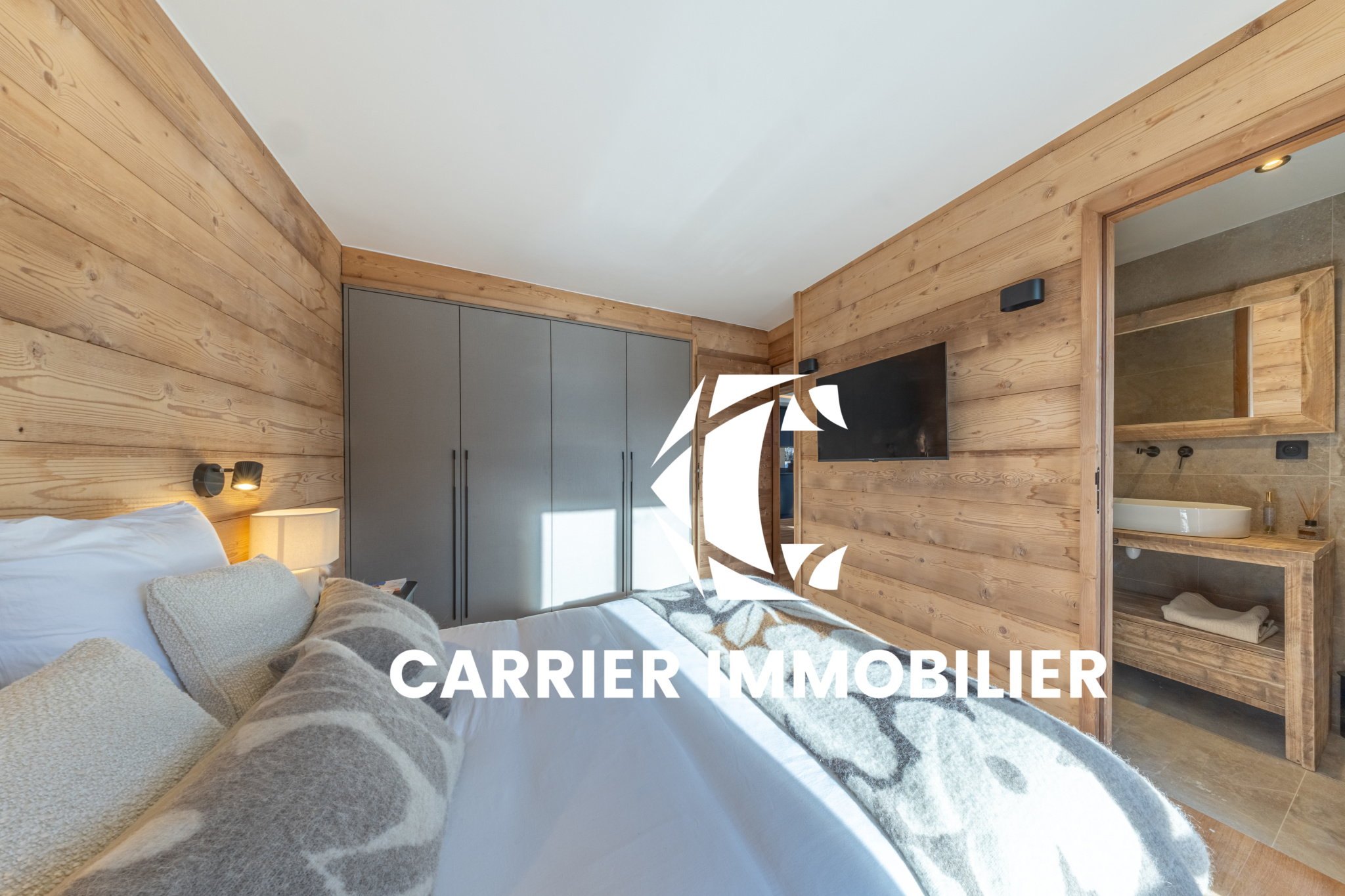Chaque espace a été conçu avec exigence, dans une écriture contemporaine respectueuse des codes montagnards. Le bois, omniprésent, dialogue avec des lignes épurées et des prestations actuelles, créant une atmosphère chaleureuse et sophistiquée. Les pièces de vie, ouvertes et généreuses, profitent de multiples expositions, offrant une luminosité constante et une véritable sensation d’espace.