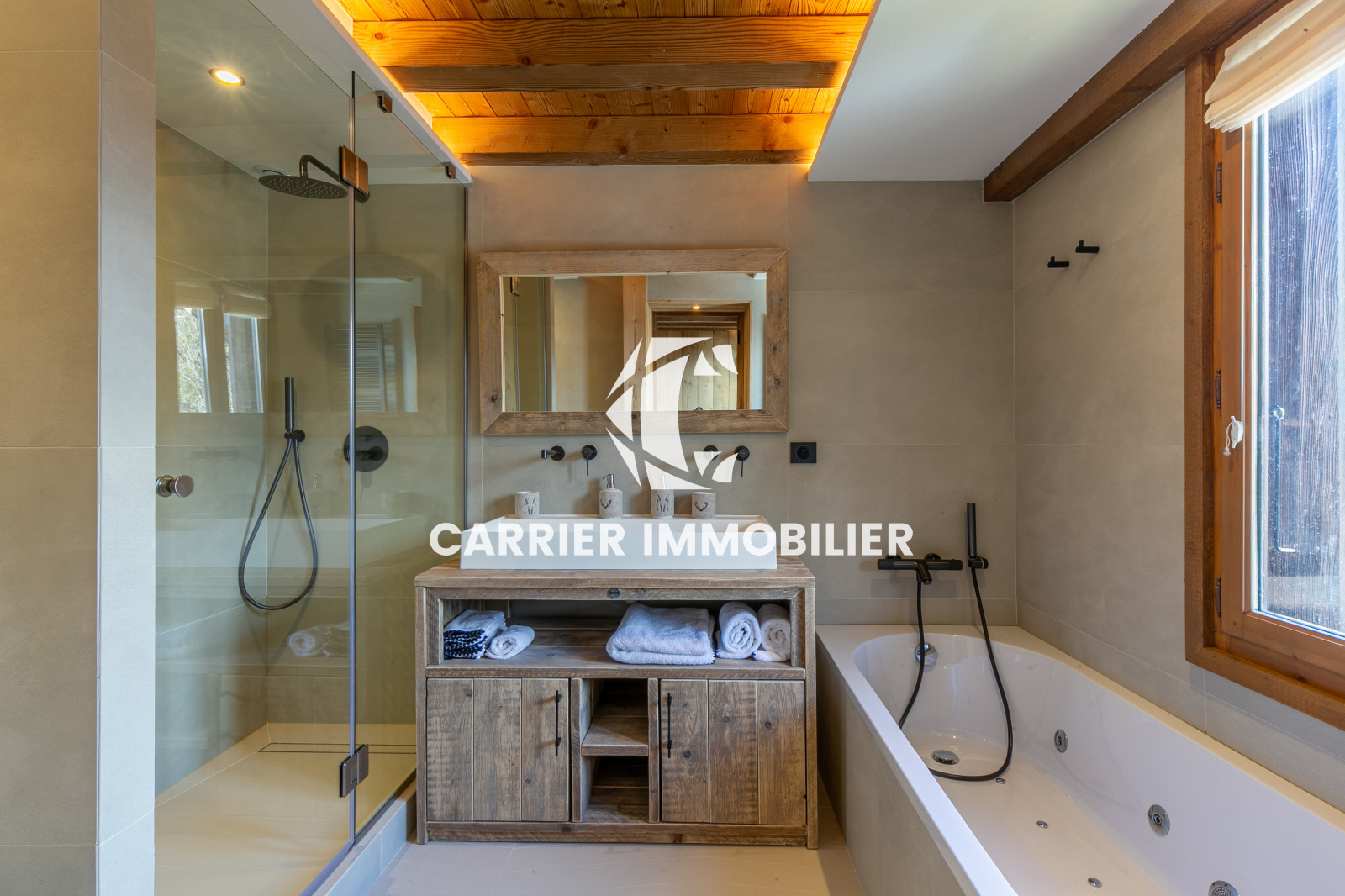 Dans l’un des quartiers les plus recherchés de Megève, alliant calme absolu, panorama d’exception et accès rapide aux pistes, CARRIER IMMOBILIER vous propose ce demi chalet authentique de 230 m² (190 m² Carrez), entièrement pensée pour une vie de montagne raffinée.