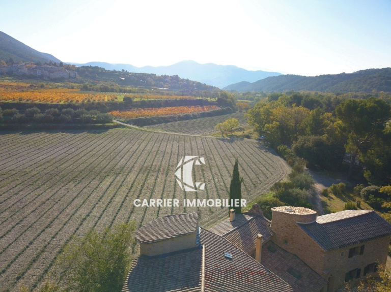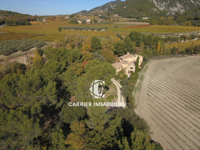 Superbe propriété s’articulant autour de deux tours, séjour d’env 75 m2 avec cheminée, grande cuisine ouvrant sur salle à manger en pierre apparente, salon avec cheminée, ces trois pièces forment un espace de plus de 150 m2 et donnent toutes de plain-pied sur le jardin. Six chambres dont une suite parentale de 33 m2 avec s/eau, wc et dressing, 2 bureaux dont un niché en haut de la tour sud avec splendide vue sur le pittoresque village de Venterol et le mont Ventoux.