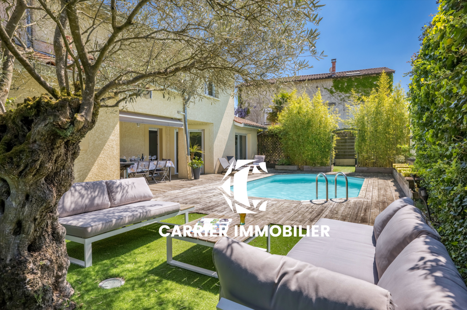 À l’extérieur, le jardin s’organise autour d’un espace convivial avec piscine, véritable prolongement des pièces de vie, idéal pour les moments de détente et de réception. Un pool house ainsi qu'un espace annexe viennent compléter cet ensemble, apportant fonctionnalité et confort d’usage.