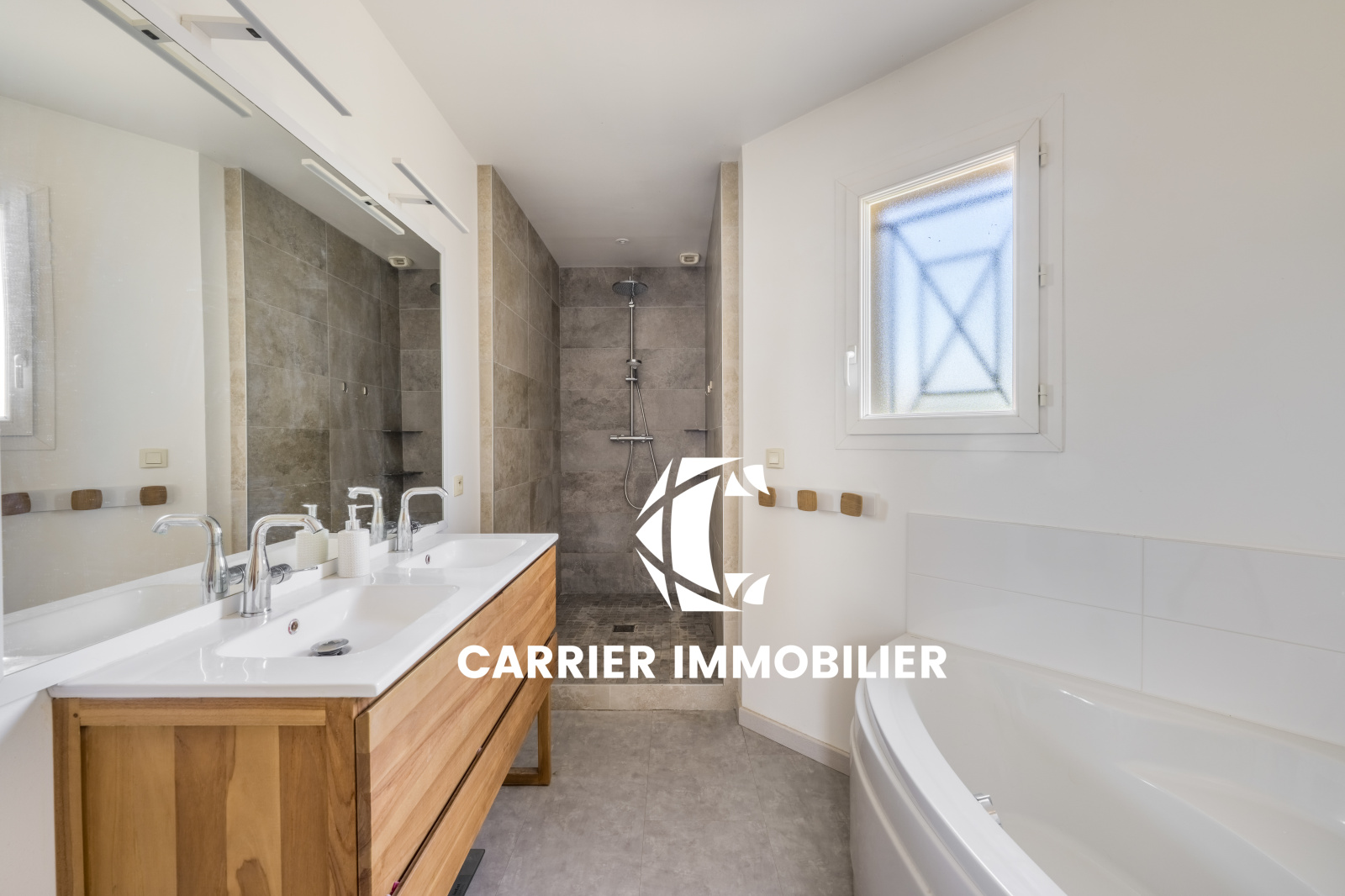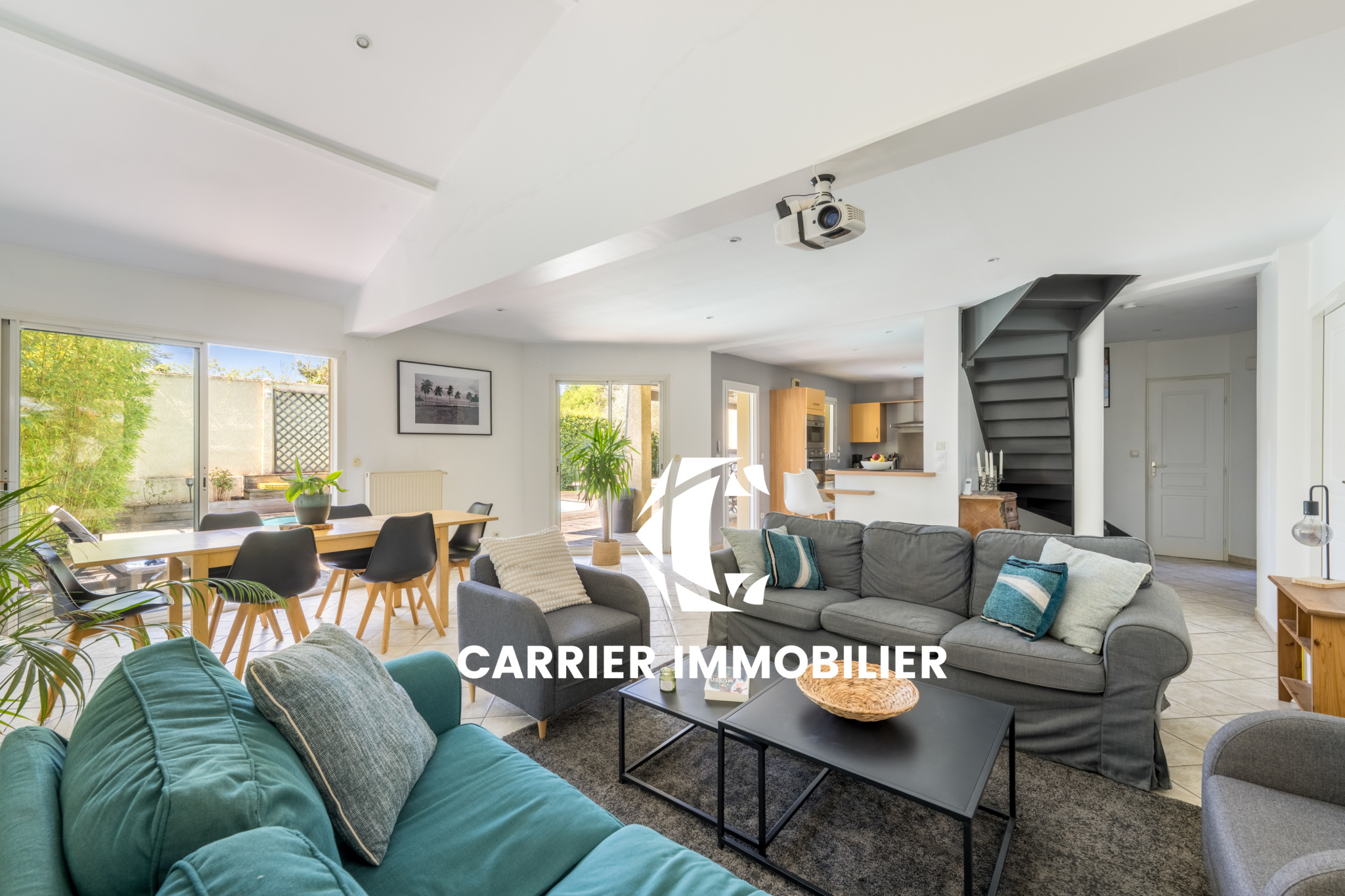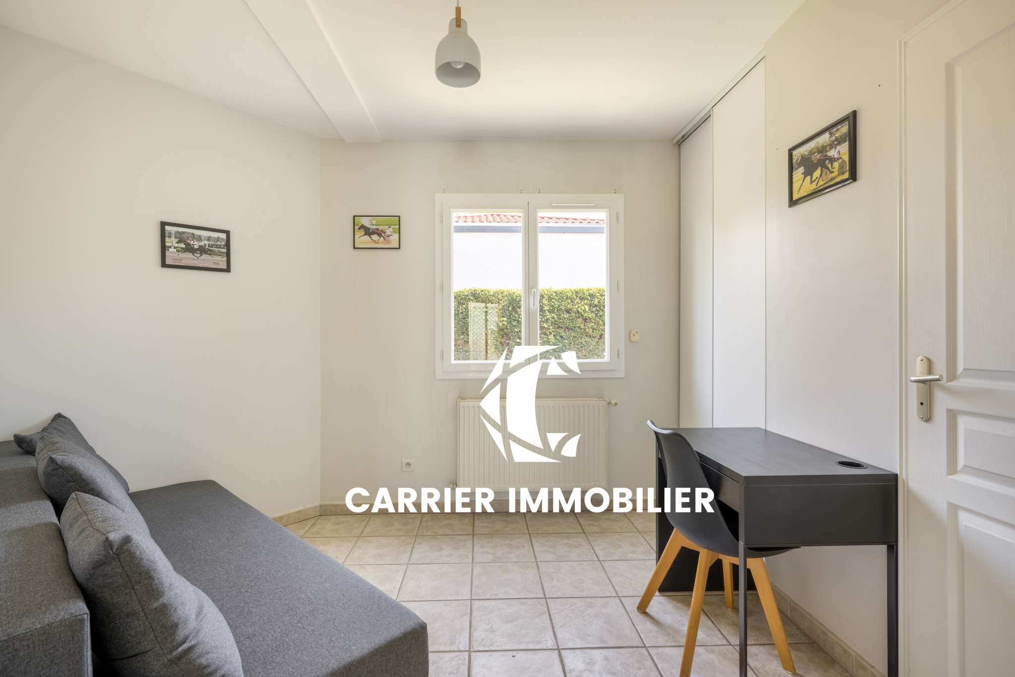Édifiée sur un terrain d’environ 423 m², cette maison développe une organisation idéale pour une vie familiale. Dès l’entrée, les volumes se révèlent harmonieux avec un espace de vie lumineux comprenant séjour et cuisine, complété par un bureau pouvant aisément faire office de chambre d’appoint ou d’espace de télétravail. Les prestations ont été pensées pour le confort au quotidien, avec notamment une climatisation réversible récente garantissant une maîtrise parfaite des températures en toute saison.