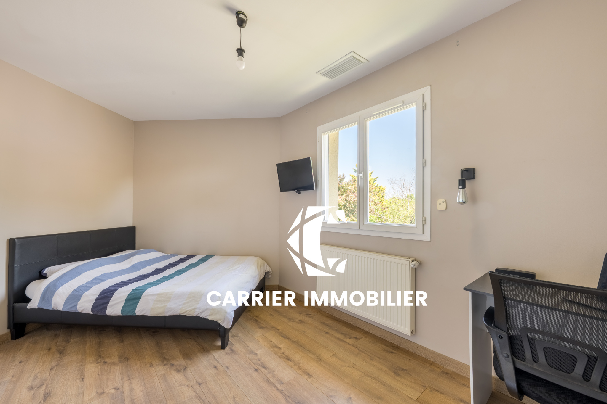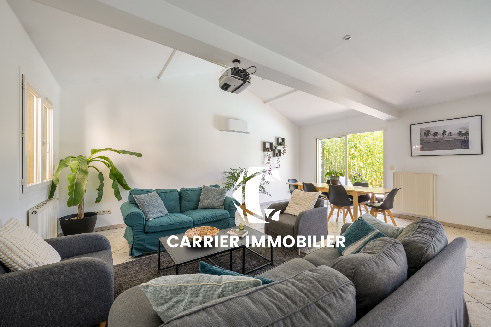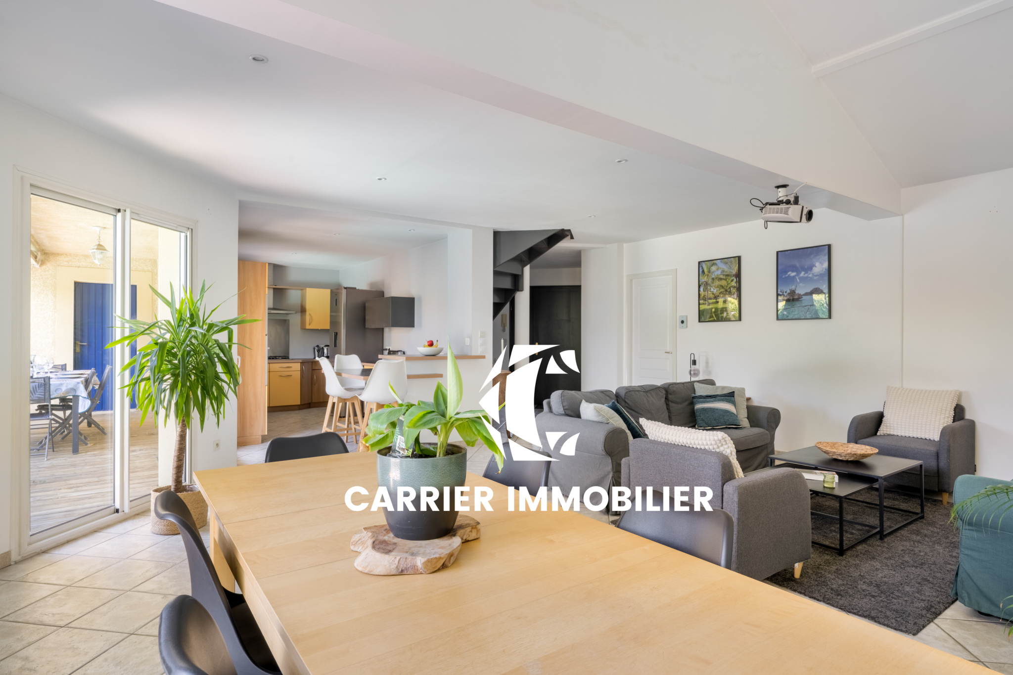 Édifiée sur un terrain d’environ 423 m², cette maison développe une organisation idéale pour une vie familiale. Dès l’entrée, les volumes se révèlent harmonieux avec un espace de vie lumineux comprenant séjour et cuisine, complété par un bureau pouvant aisément faire office de chambre d’appoint ou d’espace de télétravail. Les prestations ont été pensées pour le confort au quotidien, avec notamment une climatisation réversible récente garantissant une maîtrise parfaite des températures en toute saison.